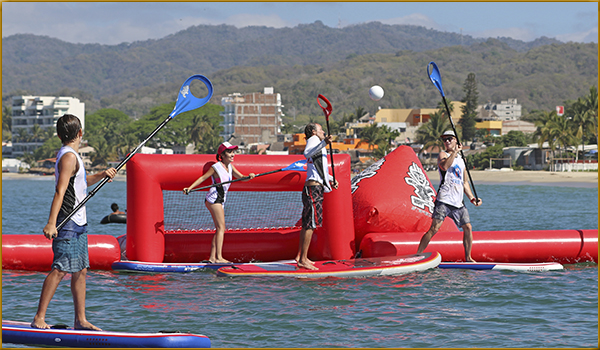 Altamente energizante y desafiante, dos equipos de remeros, luchadores para recuperar la pelota con palas o remos, especialmente hechos para lanzar la pelota a la portería del contrario, en cada extremo de la piscina, o playa.